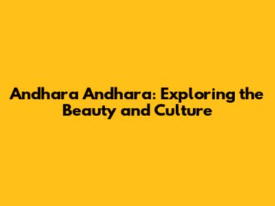 Andhara Andhara: Exploring The Beauty And Culture