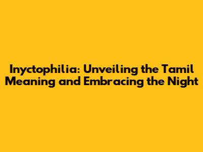 Inyctophilia: Embrace The Night With Tamil Insights