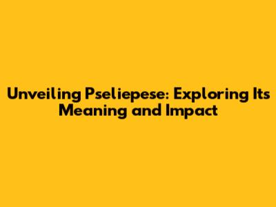 Unveiling Pseliepese: Exploring Its Meaning And Impact