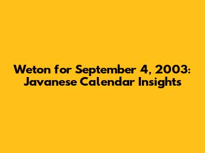 Weton For September 4, 2003: Javanese Calendar Insights